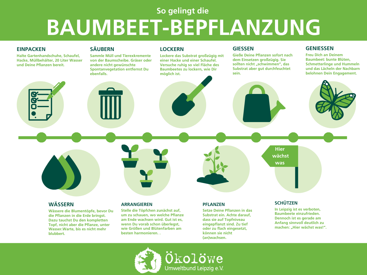 Muss ich mein Baumbeet bei der Stadt anmelden? Welche Blühpflanzen entwickeln sich gut im Baumbeet? Wie häufig muss ich gießen? Wir Ökolöwen teilen mit Dir unsere Erfahrungen beim Anlegen und Pflegen eines Baumbeetes.
