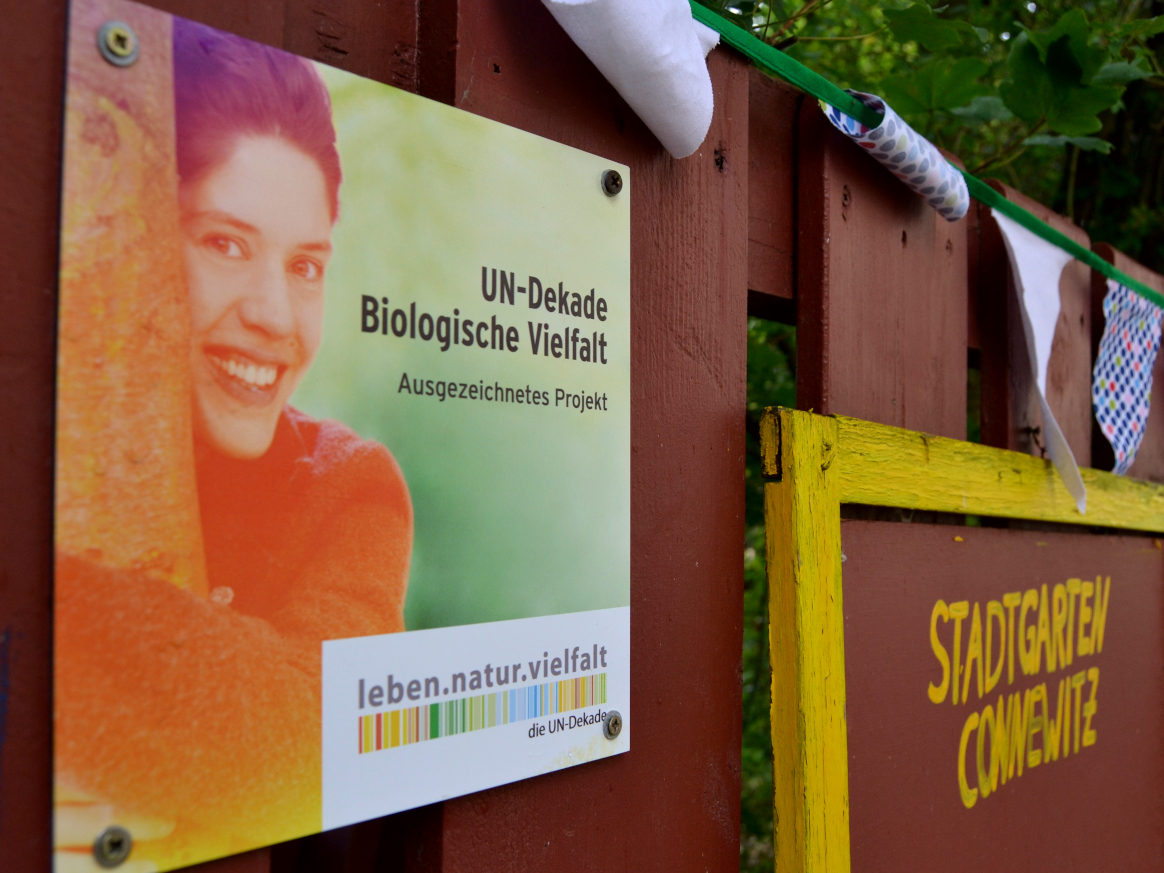 Unser Gemeinschaftsgartenprojekt Gemeinsam gärtnern :: Zusammen wachsen im Stadtgarten Connewitz wurde im Rahmen des Sonderwettbewerbs „Soziale Natur – Natur für alle“ als offizielles Projekt der UN-Dekade Biologische Vielfalt ausgezeichnet. Die Auszeichnung wird an vorbildliche Projekte verliehen, die auf die Chancen aufmerksam machen, die die Natur und ihre biologische Vielfalt für den sozialen Zusammenhalt bieten.