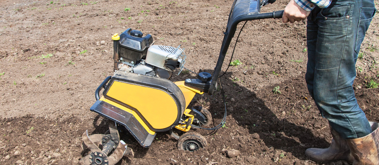 - Bearbeite die Fläche anschließend mit einer elektrischen Fräse, die Du zum Beispiel im Baumarkt tageweise ausleihen kannst. Kleinere Flächen können mit einer Sternfräse manuell vorbereitet werden. Ziel ist es dabei, die Wurzelbeikräuter komplett zu entfernen und den Nachwuchs der Samenbeikräuter aus dem Boden ans Licht zu befördern. Da die meisten dieser Pflanzen Lichtkeimer sind, startet dadurch der Keimungsprozess.