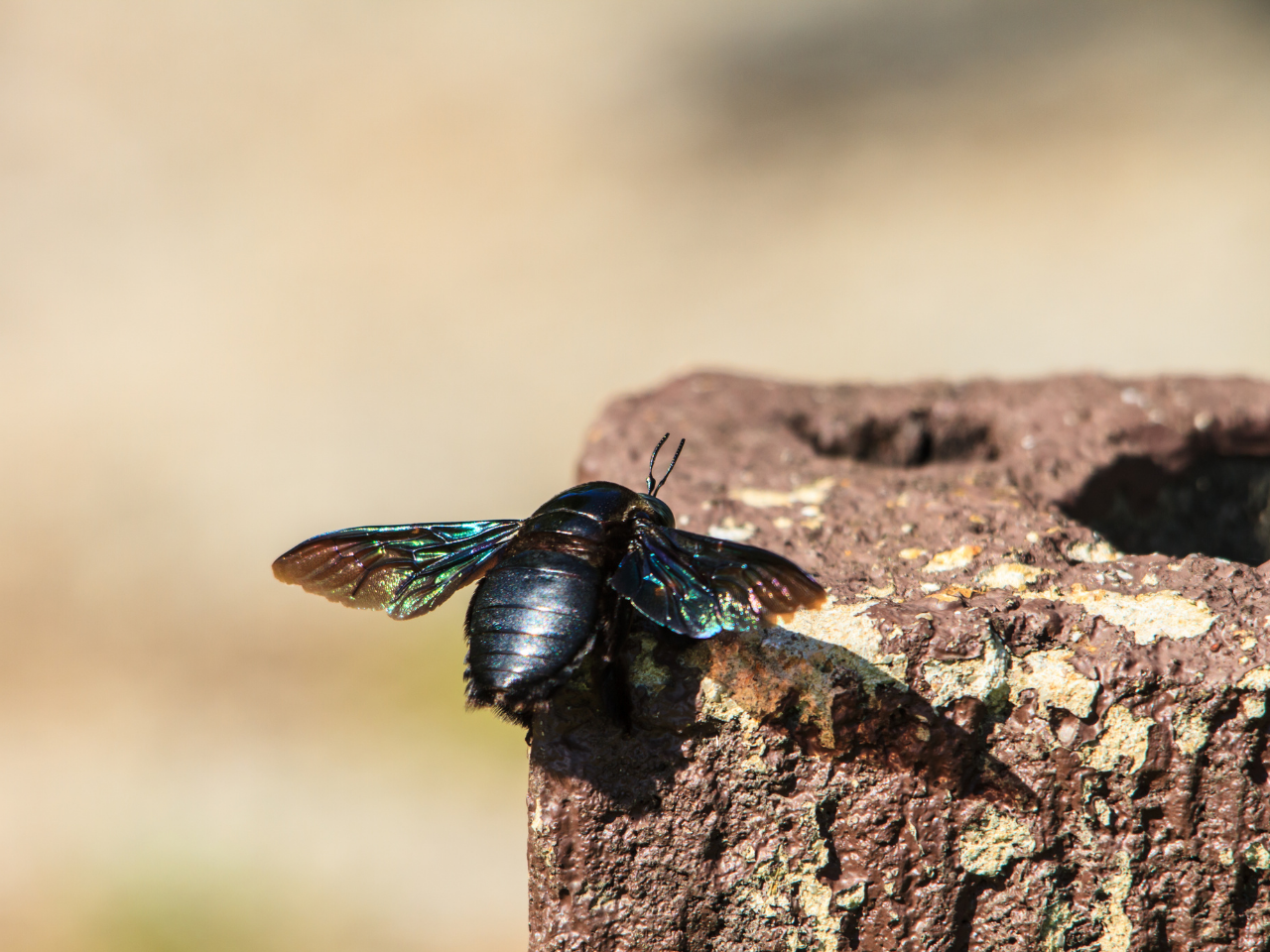 Ganz anders, als der Name Totholz vermuten lässt, verbirgt sich dahinter ein Lebensraum von unschätzbarem Wert für viele Insekten, aber auch Pilze und andere Kleinlebewesen. Die große Blauschwarze Holzbiene, aber auch die Wald-Pelzbiene und die Schwarzbürstige Blattschneiderbiene nagen Gänge in Totholz, um dort ihre Nachkommen abzulegen. Diese Wildbienen schätzen es, wenn sie abgestorbene Bäume oder Äste stehend am Wuchsort belassen oder liegend an einem sonnigen Standort im Garten vorfinden.