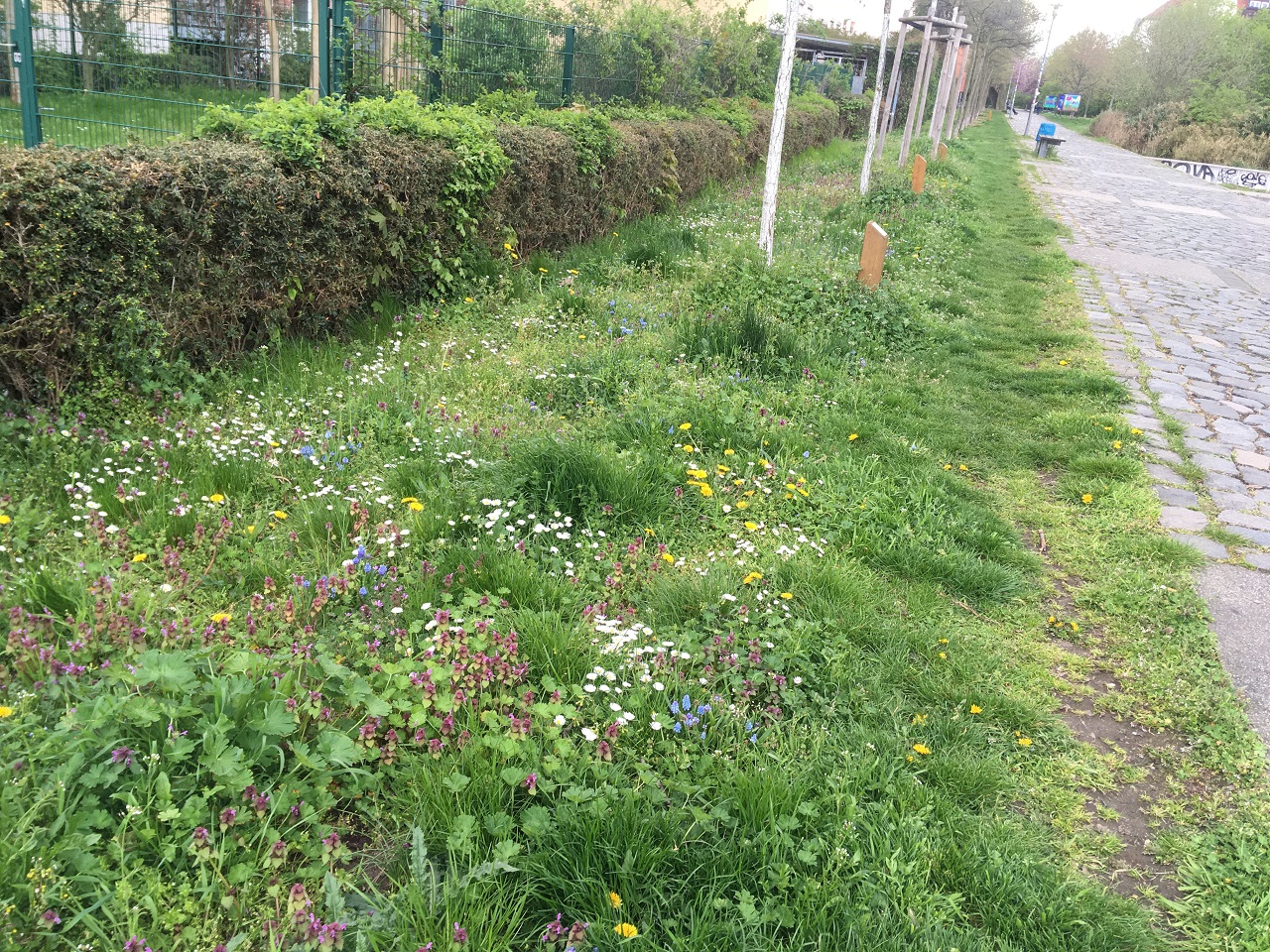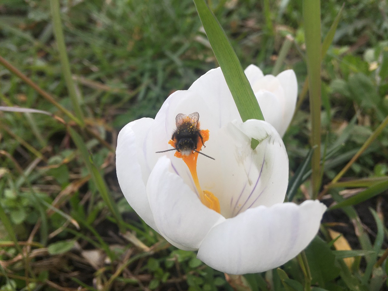 An milden und sonnigen Frühjahrstagen kann man die ersten Wildbienen bereits Ende Februar oder Anfang März sichten. Es sind frisch geschlüpfte Jungbienen und Hummelköniginnen, die ihre Winterquartiere verlassen haben. Zu diesem Zeitpunkt sind sie hungrig auf der Suche nach Nektar und Pollen. Bäume, Sträucher, Blumen? Fehlanzeige! Um die Jahreszeit blühen nur Frühblüher und die sind für die Jungtiere überlebenswichtig. Wir Ökolöwen haben gemeinsam mit Leipzigerinnen und Leipzigern in den vergangenen Jahren in Absprache mit der Stadt Leipzig Frühblüher auf verschiedenen Grünflächen und Baumscheiben gesteckt. Über 5.000 Krokusse, Blausterne, Traubenhyazinthen aber auch Wildtulpen und Frühlingsanemonen sind so in den Boden gekommen und erfreuen seither nicht nur Bestäuber, sondern auch Passant:innen. Damit die Zwiebeln sich weiter vermehren und der Blütenteppich Jahr für Jahr wächst, haben wir Ökolöwen mit der Stadt Leipzig abgesprochen, dass an den Stellen der Rasen erst zu einem späteren Zeitpunkt gemäht wird. Nur so haben die Zwiebeln eine Chance, dauerhaft zu überleben.