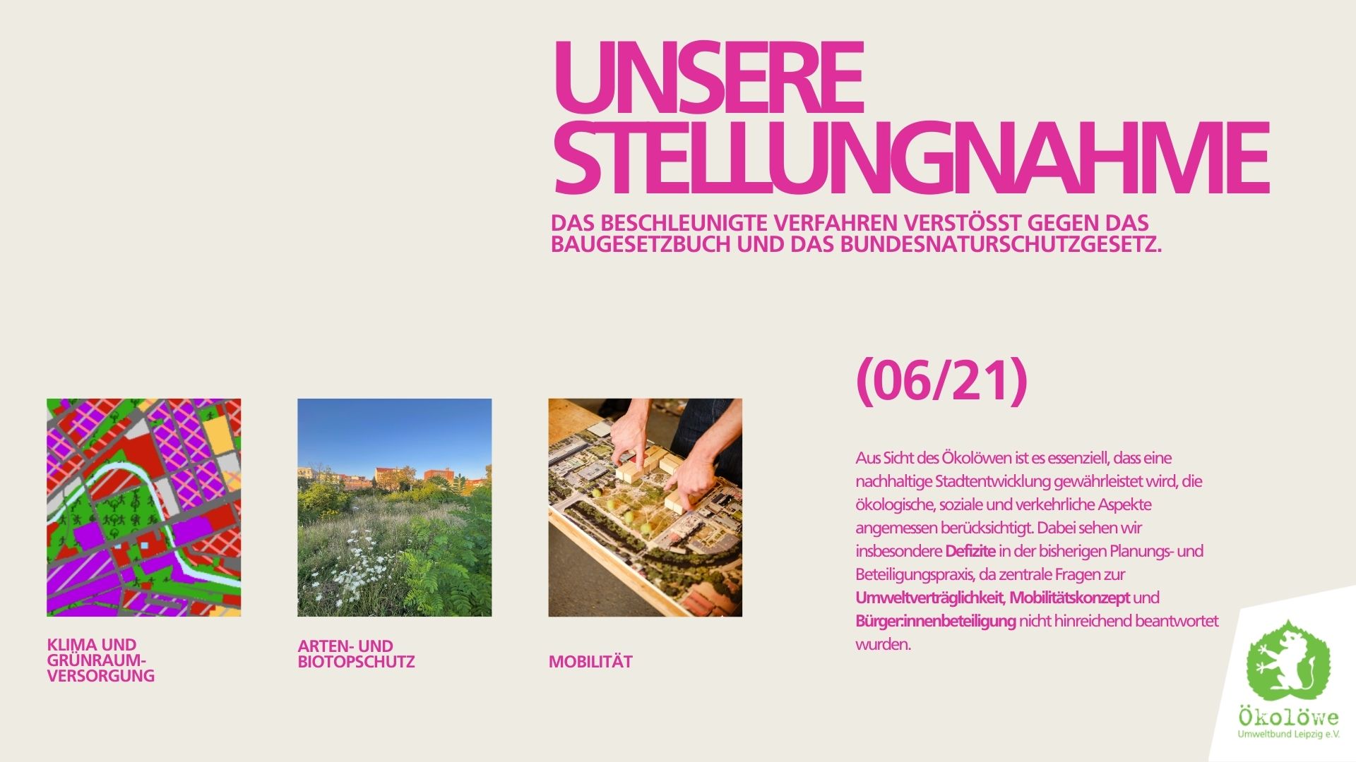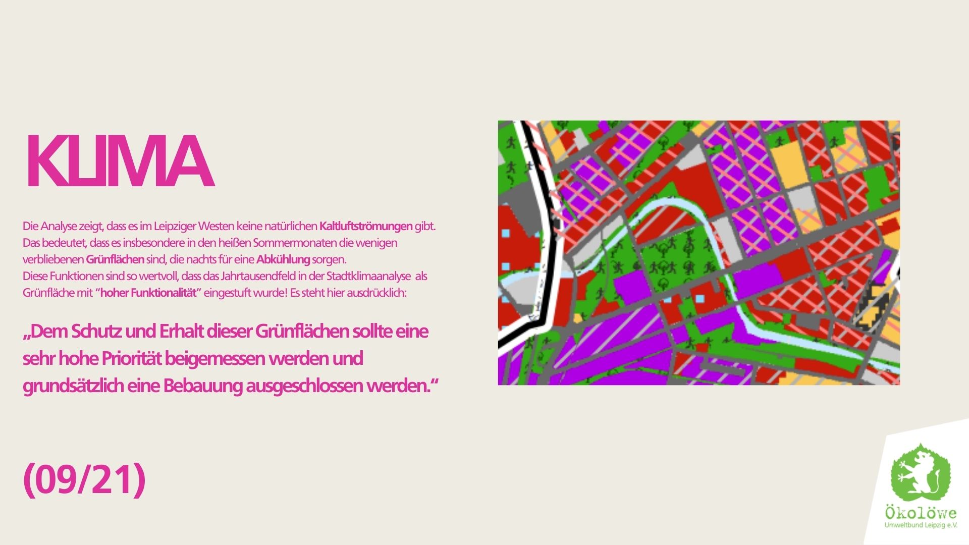Wir Ökolöwen fordern ein dichtes Netzwerk an grünen Biotopen für das gesamte Stadtgebiet, um Leipzig widerstandsfähig gegen die Klimakrise zu machen und unsere hohe Lebensqualität zu erhalten.