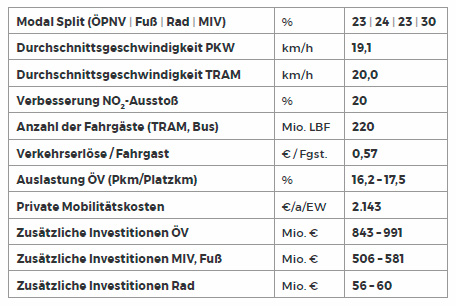 Die Anzahl der Fahrgäste im ÖPNV soll von heute 156 Mio. Menschen pro Jahr auf 220 Mio. Menschen ansteigen. Dafür wird deutlich mehr investiert als heute - auch für die Infrastruktur für FußgängerInnen und RadfahrerInnen.