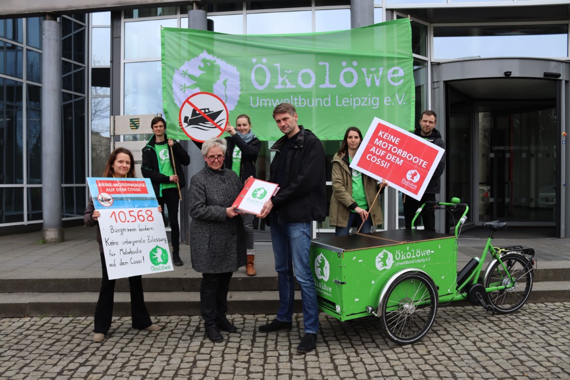 10.568 Menschen haben die Ökolöwen-Petition gegen die unbegrenzte Zulassung von Motorbooten auf dem Cospudener See unterzeichnet. Heute übergab Tino Supplies, Geschäftsführer des Ökolöwen, die Unterschriftensammlung in Leipzig an Andrea Staude, Vizepräsidentin der Landesdirektion Sachsen.