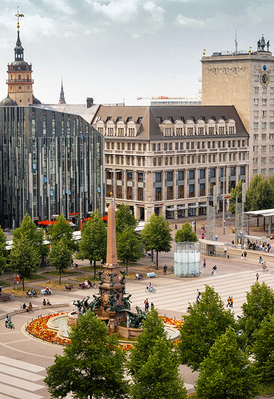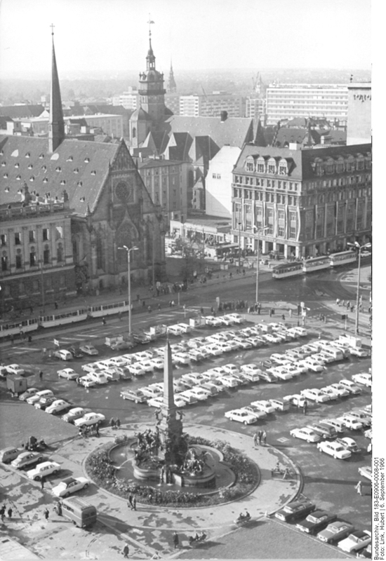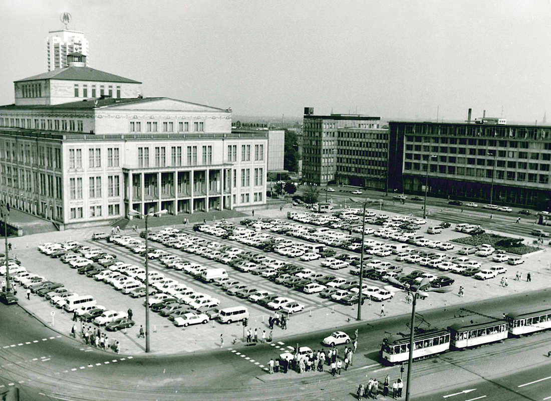 Nach dem Zweiten Weltkrieg wurden zahlreiche Freiflächen und Stadtplätze in der Leipziger Innenstadt zu Stellplätzen umfunktioniert. Mit dem Ziel einer ‚autoarmen Innenstadt‘ begann die Stadt Leipzig Mitte der 1990er Jahre, die Flächen wieder zu Stadtplätzen mit hoher Aufenthaltsqualität umzugestalten. Viel Grün und viel gute Luft, viel Raum zum Spielen, Reden und Entspannen machen Leipzigs Stadtplätze heute wieder zu attraktiven Aufenthaltsorten. Denn Plätze sind für Menschen da und nicht für Autos!